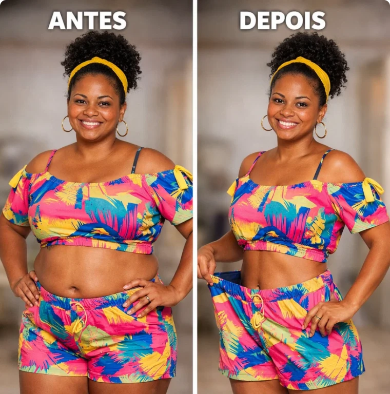 “A calça que tava apertando na barriga já tá folgando. E o melhor acordo menos inchada, mais leve. Não é milagre, mas tô vendo diferença”